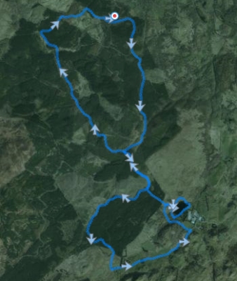 Vanaf daar vervolgen we weer onze weg, maken de lus af en zijn al snel weer in het bos. Nu eerst nog even naar het uitzichtspunt en daarna kunnen we twee kilometer lekker naar beneden rennen. Het extra lusje om het dorpje heen laat ik zitten, want ik wilde ongeveer 15 km lopen en dat zal het ook worden.