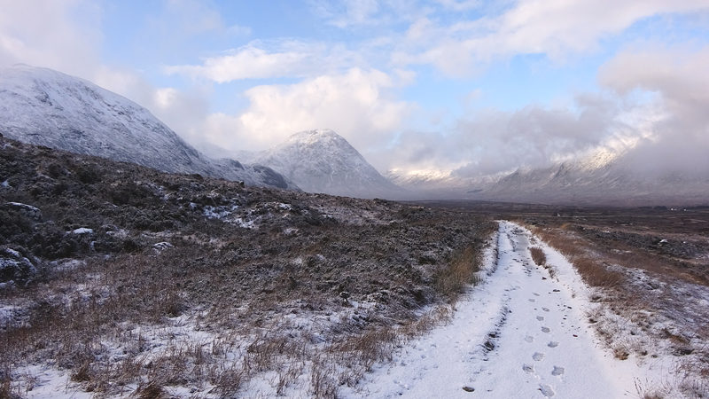 Eergisteren wilde ik een route doen uit een boekje dat helaas allemaal niet zo bleek te lukken. Maar vandaag was het plan om dan alsnog een stukje van de west highland way te doen. Vorig jaar deed ik stage 5 en vertrok ik met een taxi naar het beginpunt van de route vanaf het eindpunt waar ik de auto geparkeerd had. Deze keer wilde ik weliswaar de afstand doen van de 6e etappe, maar gewoon heen en weer vanaf Kings House Hotel. Dus een stuk van de 6e etappe en weer terug. Op zich is dat namelijk helemaal niet vervelend, want het uitzicht is beide kanten op spectaculair en als je maar een richting oploopt, dan mis je een deel. Bovendien had ik geen flauw idee hoe het weer zou zijn/wordenen hoe het lopen zou gaan. Op deze manier is dat allemaal heel gemakkelijk te regelen. Enige minpuntje van de dag was de late start (vanwege de wind) waardoor ik uiteindelijk maar een klein stukje gelopen heb. Maar zo blijft er altijd wat te wensen over! Het stuk van Inveroran naar het punt waar ik nu gebleven ben en verder vanaf Kings House Hotel via de Devil’s staircase naar Fort William. Dat met dus allemaal nog een keer gebeuren.