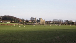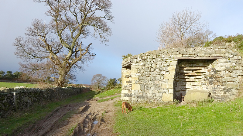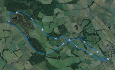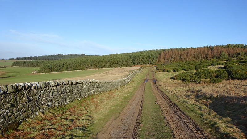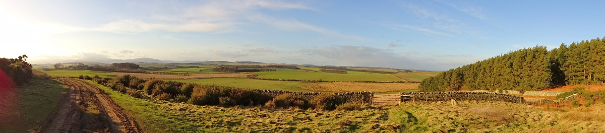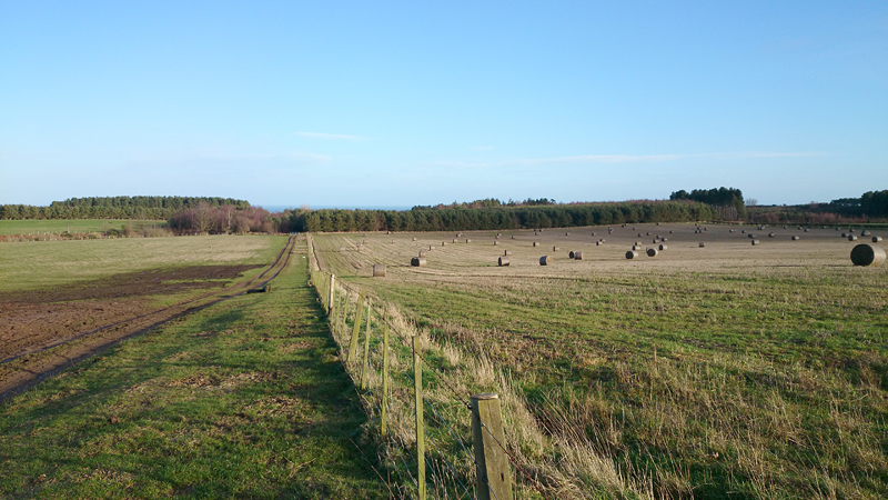 Gisteren was het prachtig weer maar ben ik niet gaan lopen. Geen idee waarom niet, iets met ‘herstel’ ofzoiets. Ook best. Wel lekker gezwommen aan het eind van de dag en lekker geslapen. Vanmorgen was het weer erg winderig en koud, maar er scheen wel een zonnetje. Ik wilde eigenlijk naar de cheviots maar er zou sneeuw liggen en met deze wind is het misschien niet het meest geschikte doel voor vandaag, dus dan maar iets anders. Een mooie route die ik vorig jaar voor het eerst heb gelopen dan maar: Belford naar St Cuthbert’s cave. Dat zou een gevarieerde ondergrond zijn van weiland tot bospad en bovendien een achtje wat fijn zou zijn met de wind en ook nog eens deels door een bos. Gauw alles klaarmaken en op pad dus maar!