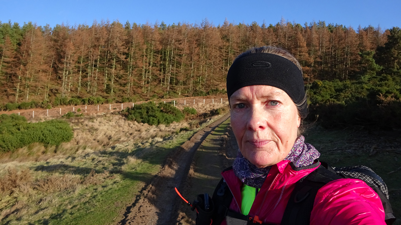 Ik ben wel een beetje afgekoeld. Eigenlijk was dit een mooi moment geweest om even het donsvest uit de tas te halen om te testen hoe dat nou is. Het is op dit moment helemaal niet nodig, maar het was een mooie test geweest. Niet aan gedacht, volgende keer dan maar. We gaan gauw verder. Even opwarmen en daarna weer gauw verder joggen.