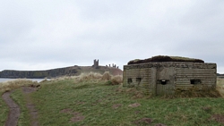 Daarna verder een stukje door de duinen en over de stenen even omhoog klauteren naar het pad richting het Castle. Daar even de bunker gekiekt en de rare brug die zichtbaar was met het lage water