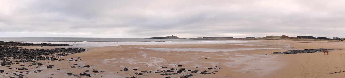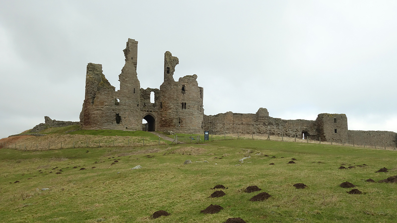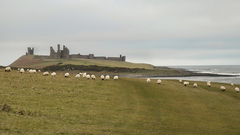 Geen mooi weer maar wel zin in een rondje. Ik koos voor de start in Low Newton en wilde eerst naar Dunstanbugh Castle lopen en daarna terug naar High Newton of verder terug naar Beadnell. Op die manier zou ik op de terugweg naar de auto weer de wind in de rug hebben en niet alleen maar eerst wind mee en daarna wind tegen hebben. Ik koos voor het strand richting het Castle en dat liep prima. Omdat ik de nieuwe camera bij me had, maakte ik eerst wat foto’s en speelde ik even met de instellingen.