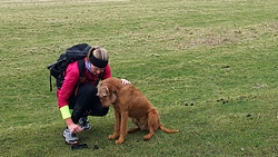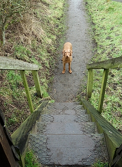 Ik moest op een gegeven moment lachen want woef ging rechtsaf terwijl ik wist dat ik linksaf wilde richting een farm. Eerder (vorig jaar) waren we echter rechtsaf geslagen en blijkbaar wist waf dat nog. Ik koos echter nu voor de weg links, eerst door de modder maar daarna over een goede weg, terwijl het pad rechtsaf me voor een hoog hek zou brengen waar ik eerder woef overheen moest tillen. Ik denk zelfs dat het twee jaar geleden was, want toen was ik nog helemaal geen modder gewend en baalde ik vreselijk van de gekozen route (bij zoeken naar de link zag ik dat het zelfs in 2011 was).