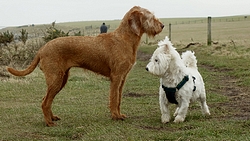 Eerst moest waf nog even spelen met een Westie. Nu kan dat nog, want over tien dagen zal ik met een slettebakje lopen die zelf wel ‘wat wil’ en hoog loops is, maar nu is alles nog prima te doen gelukkig.