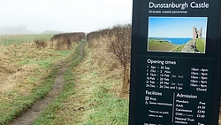 Daarna ging alles snel, want na Dunstan Steads kom je weer op het pad langs de golfbaan en ben je alweer bijna in Low Newton. Het castle was niet meer te zien in de mist en de regen.