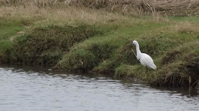 Toen ik bij de waterarm kwam zag ik een kleine zilverreiger. Die zat een beetje te ver weg voor een mooie foto met deze camera maar het lukte toch nog redelijk goed om de vogel herkenbaar vast te leggen.