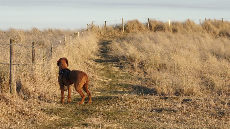 Aangezien waf geen zak aan een wegrondje vindt hier, koos ik dan maar voor Beadnell en al snel waren we op weg. Geen wind, de avond zon en een fijne temperatuur. Woef genoot volop en rende als een idioot in het rond, en blies enorme wolken lucht uit. Die amuseerde zich dus wel. Ik merkte dat er nog wel wat vermoeidheid in mijn benen zat van gisteren. Vooral de uren onderweg waren wel zwaar denk ik want de afstand was het niet. Maar even loslopen en morgen een rustdagje. Ik hoop dat ik vannacht een beetje kan slapen in de tent want alles is nieuw.