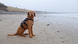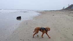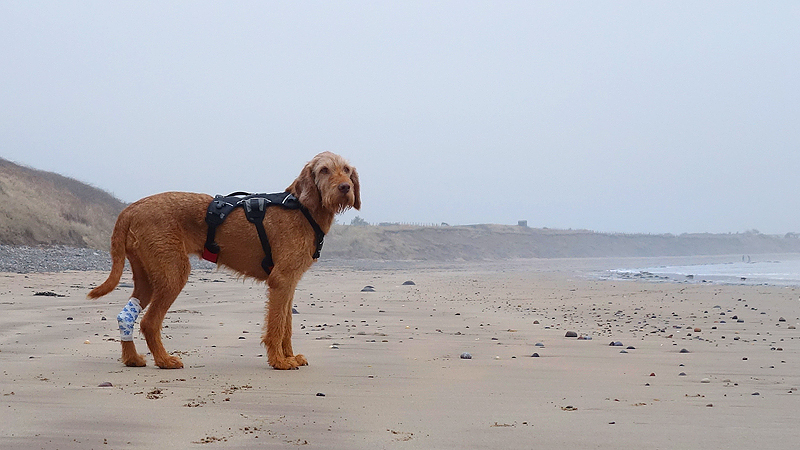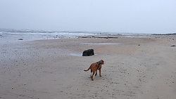 Vandaag zou het getijde ongeveer hetzelfde zijn als tijdens de run en was ik dus benieuwd naar de breedte van het strand bij Foxton in de ochtend als ik daar voorbij zou moeten. Ik had dus alles nagerekend en om 9.15 waren we op weg naar de golfbaan om te gaan kijken en vanaf daar de ronde terug te lopen naar de stepping stones. Aan die kant zou geen tot weinig modder liggen en dat zou dus met waf en haar pootje wel moeten kunnen.