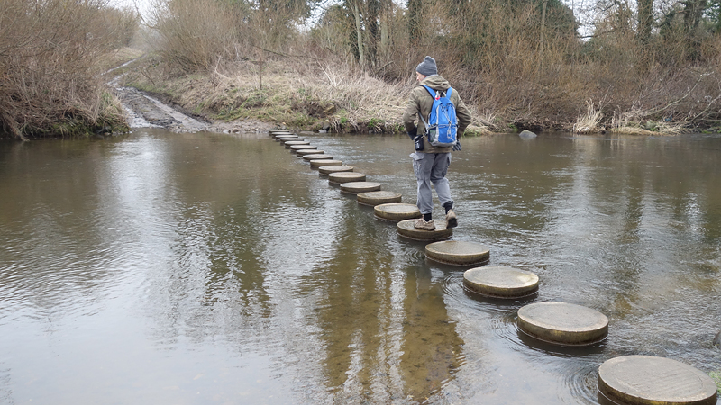 De boerderij doemde al op en al snel waren we bij de stepping stones. Daar trof ik een echtpaar waar ik mee aan de praat raakte over wandelen, routes en de run.