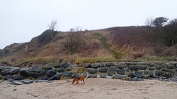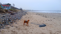 De terugweg ging zo mogelijk nog sneller en voordat ik erg in had, waren we weer bij Foxton Hall golfcourse. Daar ben ik nog even naar het strand gelopen om te kijken hoe het er dan nu bij zou liggen, ver na de ‘safe crossing’ tijd van de tabel maar er was nog steeds wel een stukje beloopbaar strand. Ziet er dus goed en hoopgevend uit. Als het nu niet twee weken achter elkaar gaat regenen, dan zal het allemaal wel loslopen.