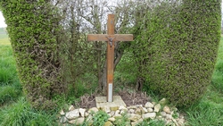 Daarna loop ik weer door een dorpje en overal kom je onderweg wel kruisen en gedenk tekens tegen.