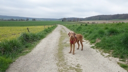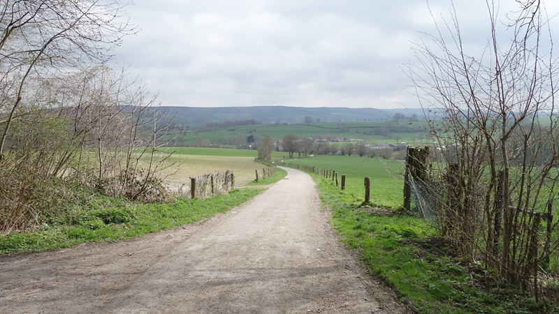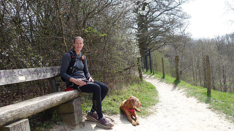 Al snel ben ik dus op pad voor mijn wandeling met woef en ik besluit de tent dan maar op te ruimen en op weg te gaan voor een rondje. Gisteren heb ik nog een route gedownload en op de navigatie gezet dus ik weet waar ik heen kan gaan. De site wandelgidszuidlimburg is echt ideaal omdat je heel makkelijk routes kunt downloaden en kunt bekijken. Ik had route 19 aangeraden gekregen door mensen bij de tent. Omdat ik niet zeker wist of ik vandaag ook hier zou lopen, had ik (stom genoeg) geen eigen route gemaakt. Niet handig, een volgende keer zou ik dus me beter voorbereiden en ook alternatieven hebben qua afstand en landschap. Er is genoeg te lopen!