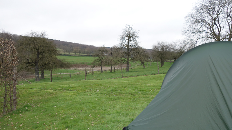 Zo gezegd zo gedaan en als ik terug ben van de wandeling met woef, start ik met het opruimen van de tent. Dat gaat vrij gemakkelijk en al snel is alles weg en ingepakt. Zo jammer dat er geen zonnetje is!