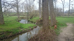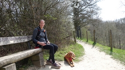 Al snel waren we weer bij het beekje en het bankje dat inmiddels heerlijk in het zonnetje lag. Daar ben ik nog even lekker gaan zitten en woef lag al snel te dommelen in het zonnetje. Een beetje onbevredigend einde van deze twee dagen. Ik had het beter voor moeten bereiden omdat er op de meeste routes van alles te zien is. Dat had ik dus niet goed gedaan en ik had me ook niet gerealiseerd dat het met mooi weer zoals gisteren, gewoon lekkerder is om buiten het bos te blijven (tenzij het zo warm is dat de verkoeling van het bos nodig is). Maar ik ken nu al een beetje de weg en weet wat ik kan verwachten van de routes van de site en de omgeving. Dit ga ik dus gewoon nog een keer doen!