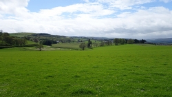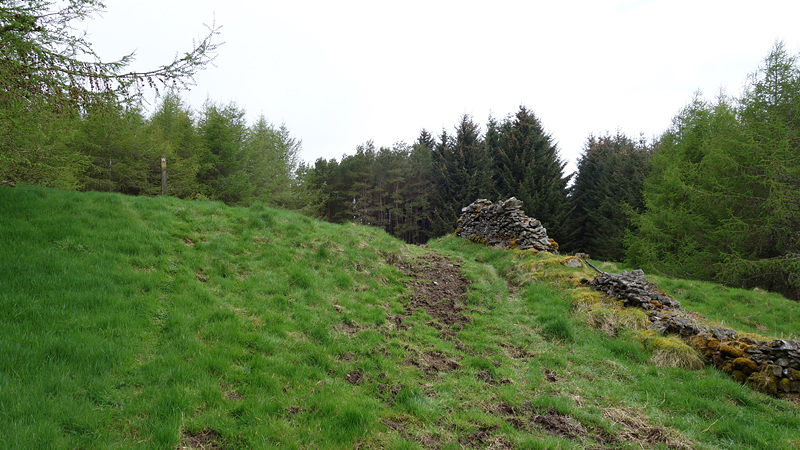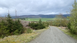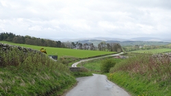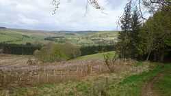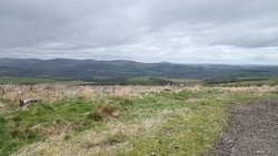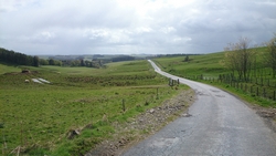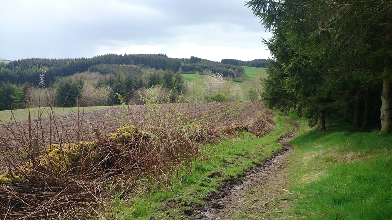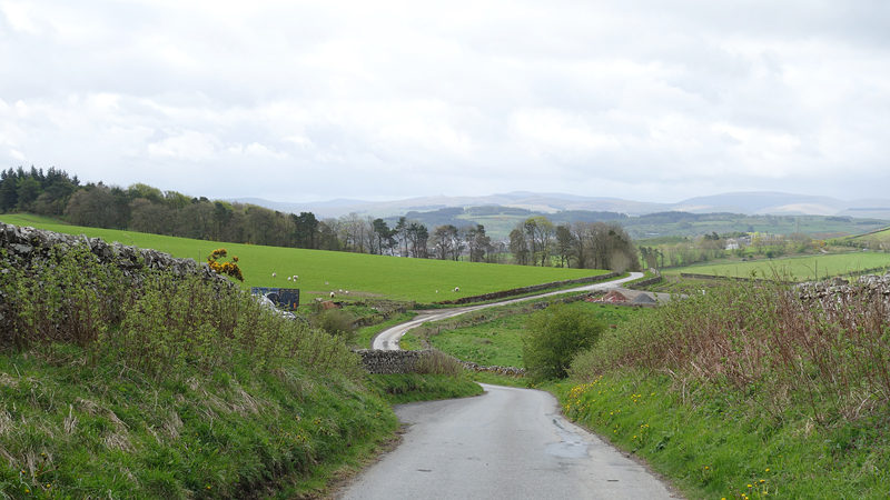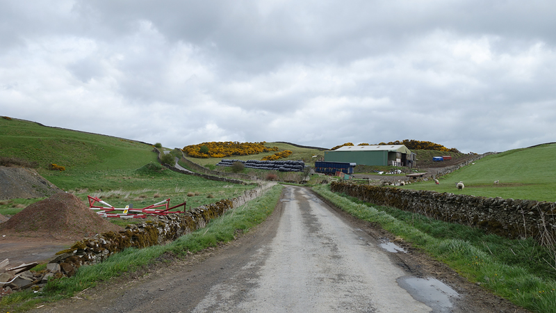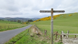 We lopen nu in de richting van Ashkirk maar de route gaat via Wollrig. We gaan nu richting het hoogste punt op de tweede klim van vandaag. Daarvoor lopen we over een stuk weg. Dat zou prima te lopen zijn maar het voelt allemaal vrij zwaar dus ik doe steeds maar een stukje.