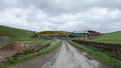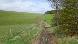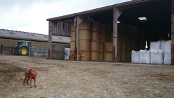Dan komen we ineens op een boerderij uit en ik denk dat ik verkeerd ben gelopen toen ik genoot van het uitzicht en eindelijk lekker naar beneden kon lopen. Het zal toch niet waar zijn? Een bordje zie ik niet dus kijk ik op de kaart of we goed zitten. Maar het klopt en we moeten dus over het erf van Middlestead farm.