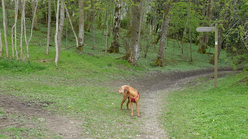 Ik geef waf wat eten en moet dus noodgedwongen zeker een half uur wachten. Ik ga niet zitten want het is koud en het waait en ik blijf maar een beetje om een boom heen lopen om uit de wind te blijven. Dat is het enige dat echt jammer is op deze route. Ik kan niet lekker even een uurtje in de zon gaan zitten op mijn zitmatje en dat is jammer.