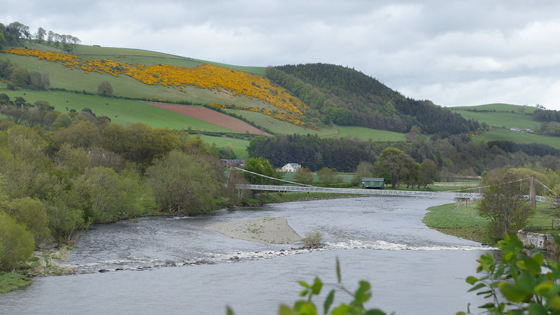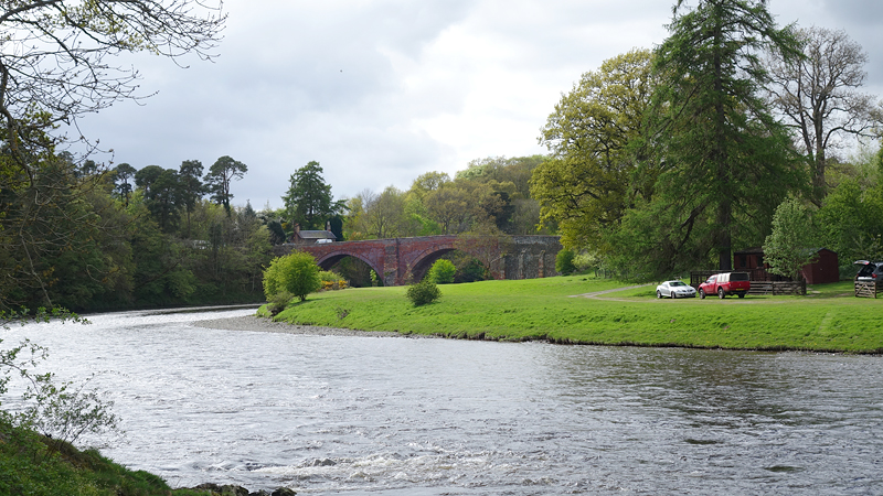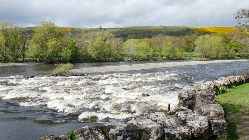 We lopen verder langs de river Tweed en ik vraag me af waarom we er nog niet zijn. De route zou ongeveer 35 km zijn maar dat is langer. Vervelend want ik had al lang in de gaten dat ik de bus gewoon niet ga halen die ik had gepland. Geeft niet, maar de volgende gaat pas over een uur. Eigenlijk zou ik het ook niet erg vinden als we er nu eens zouden zijn. De afstand tot het einde lijkt ook maar niet korter te worden op de navigatie. Ik zie in de verte Redbridge viaduct, gebouwd in 1840 voor de railway van Edinburgh naar Hawick die in 1849 ging rijden.