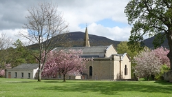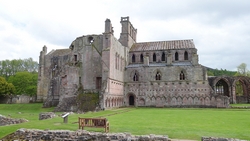 Dat ziet er goed uit maar ik ga eerst op zoek naar de bushalte en zie dat deze tegenover de abbey ligt. Dat komt mooi uit want ik heb nog even voordat de bus komt. Ik kleed me snel om, doe mijn winddichte broek aan en mijn dons jas om niet af te koelen nu ik klaar ben met de route. Gauw wat foto’s van de abbey!