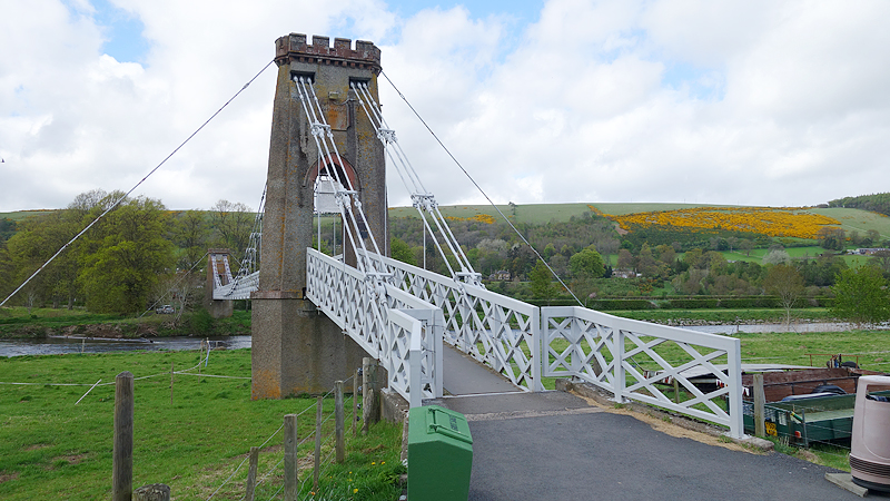 Het lijkt er wel op, want even later doemt de Chain bridge al op. Een opvallende witte brug die volgens de kaart echt vlakbij Melrose moet liggen.