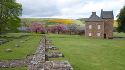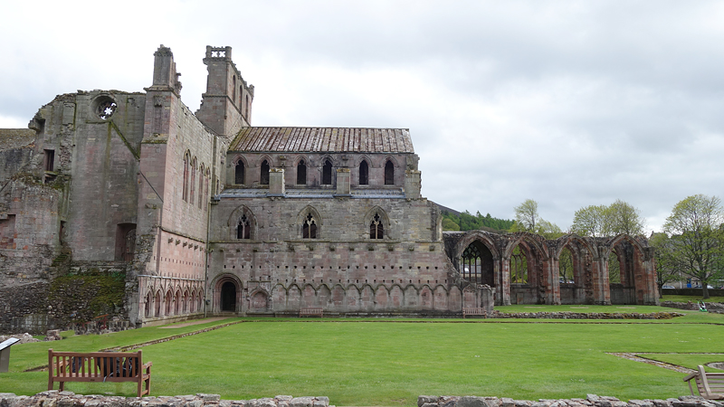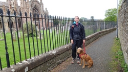 We lopen richting Abbotsford House waar je helaas niets van kunt zien vanaf de route. Ik kan er ook niet heen vanwege de hond en ik loop ook een beetje naar de tijd te kijken in verband met de bus aan het einde.