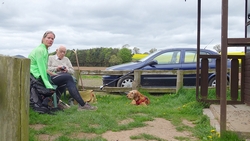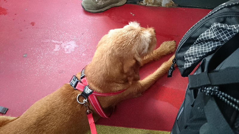 Het gaat natuurlijk nergens over, maar ontmoetingen onderweg zijn gewoon heel erg leuk. Aan de ene kant is het prettig als het stil is, maar een beetje kletsen met mensen is toch ook wel heel erg leuk. Als ik denk dat woef genoeg gerust heeft na het eten, gaan we weer op weg.