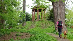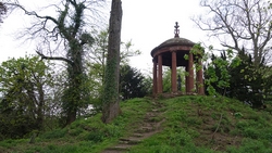 Na de brug zie ik de Temple of the Muses al. Daar ga ik even kijken natuurlijk! Earl of Buchan maakte dit gekke ding. Het is een model van een Grieks paviljoen met een modern beeld erin. Maar leuk om even te zien!