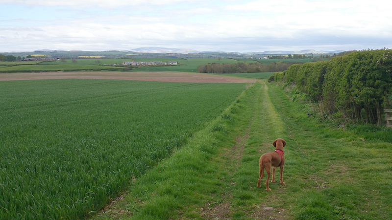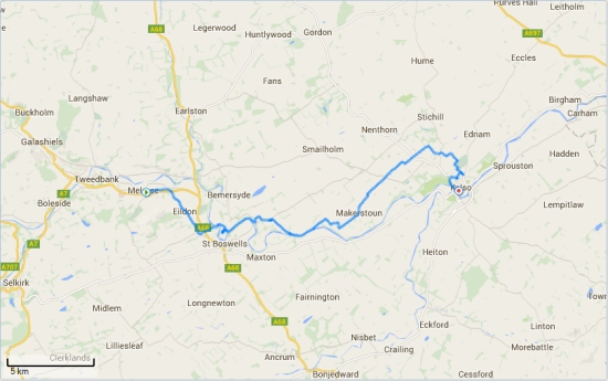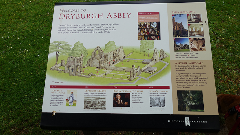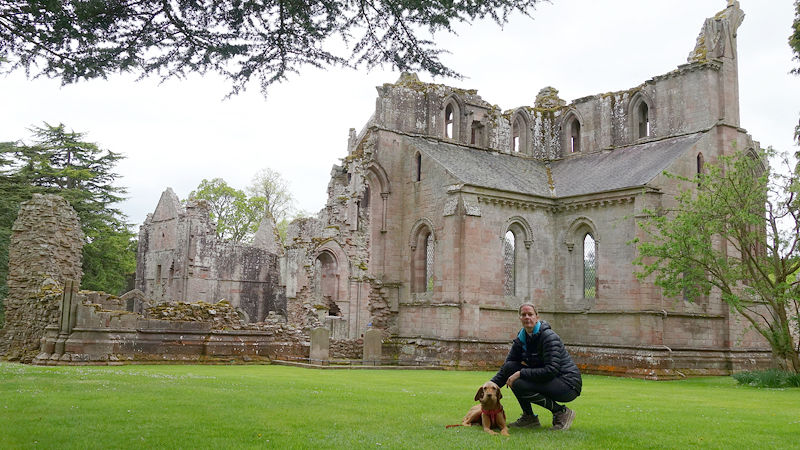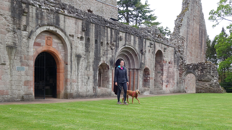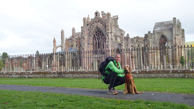 Omdat woef vanmorgen helemaal vrolijk en fit was, gaan we natuurlijk vandaag op pad voor dag 3 van de Borders Abbey Way. Vandaag zal de kortste route zijn die van Melrose terug naar Kelso loopt. Volgens het boekje zal de route 29 km zijn. Eerst zal de route van Melrose van de abbey aldaar naar Dryburgh lopen waar ook een abbey te zien is, en vervolgens via Makerstoun naar Kelso terug.