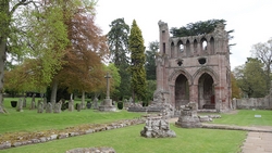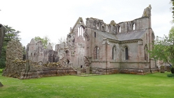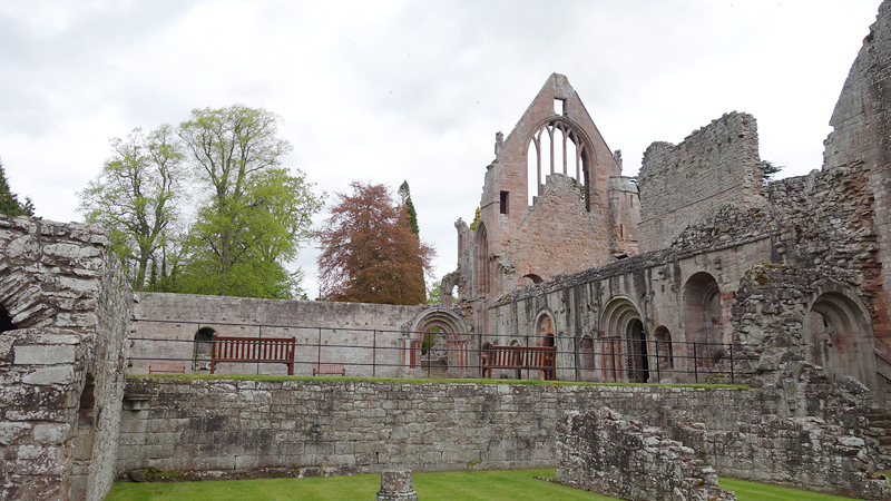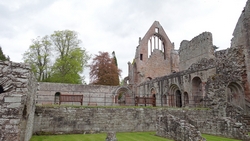 Ik zou even de route af moeten voor Wallace statue maar ik besluit nu eerst verder te gaan richting Dryburgh waar de abbey zal zijn. De vierde en laatste abbey die ik zal bewonderen. In Kelso, Melrose en Jedburgh waren de andere drie van deze route. De abbey is vanaf het pad totaal niet te zien dus ik besluit een kaartje te kopen om het te gaan bewonderen. Ik heb alle tijd tenslotte. Het kost me 5 en halve pond en aan het einde kom ik tot de ontdekking dat je nog apart voor het toilet moet betalen ook. Merkwaardig. Ik kan mijn rugzak bij het meisje achterlaten en ga op mijn gemakje rondkijken.