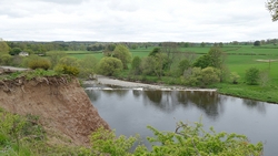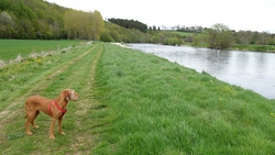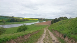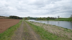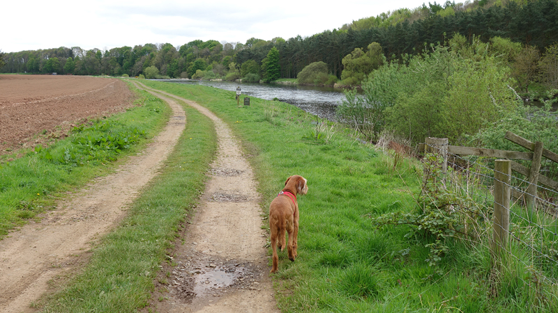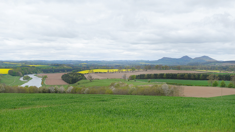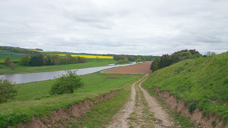Dan lopen we langs de oever van de River Tweed. Links van me prachtige gele koolzaadvelden en volop vogels te horen en te zien. Ik denk zelfs dat ik een dipper zie vliegen die naar zijn nest gaat. Er is niemand te zien op een visser na die me tegemoet komt lopen met zijn aparte kleding aan en zijn lange hengel.