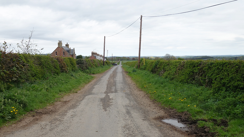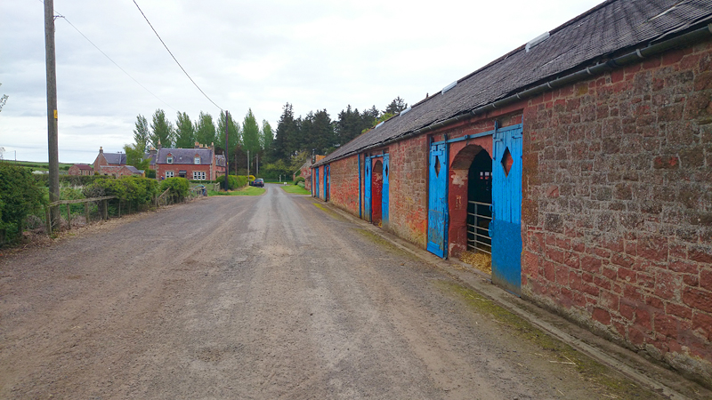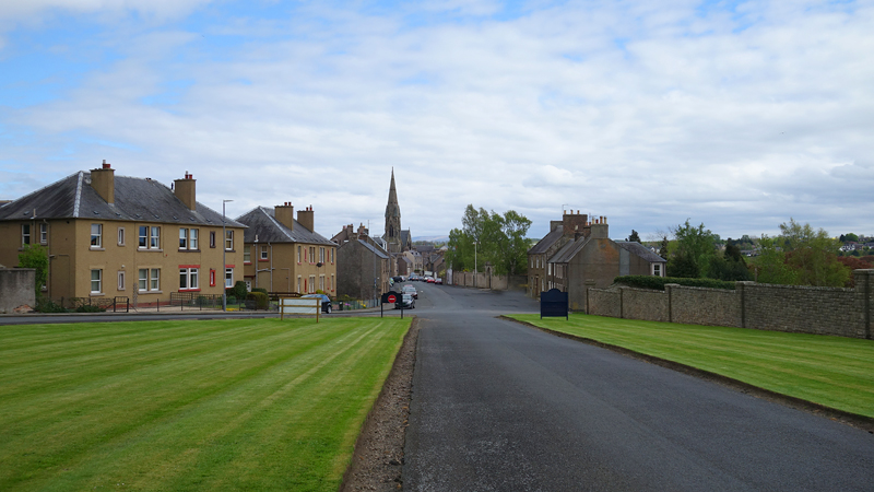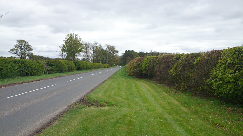 Langs de ingang van Floors Castle dat ik helemaal gemist heb toen ik op de eerste dag over de brug aan de andere kant Kelso binnen kwam lopen. Ik tik dit enkele dagen later en inmiddels hebben we weer een stukje gelopen en zag ik gewoon wel degelijk Floors Castle liggen toen ik daar liep. Misschien was het weer niet helder genoeg of was ik gewoon een beetje blind. Maar het is een enorm kasteel dat je niet kunt missen. Jammer genoeg is er vanaf deze kant niks van te zien.
