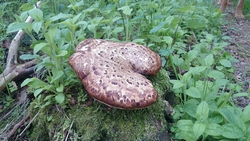 Daarna gaan we een stukje door bos waar ik een enorme paddenstoel zie staan. De enige die er staat en best bijzonder. Kabouters of een elfje zie ik helaas niet.