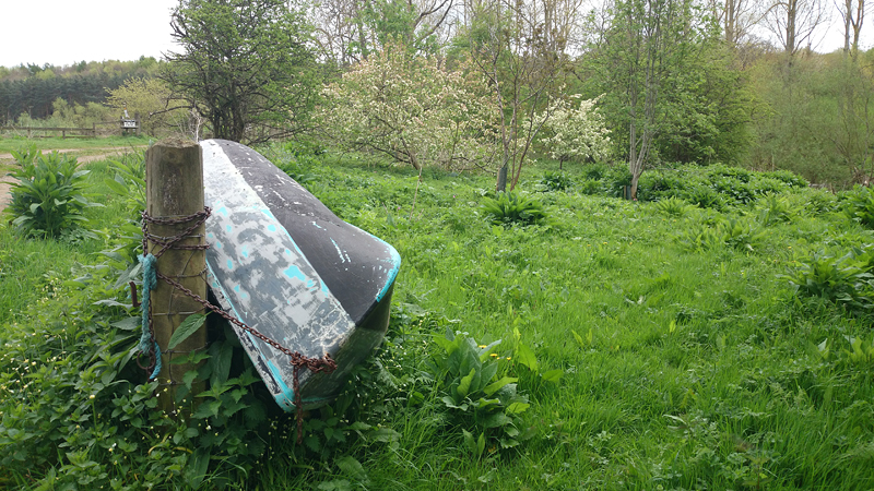 Dat blijkt te kloppen want ik heb net de eerste foto’s gemaakt als de man aankomt en meteen op het bankje gaat zitten uitpuffen. Hij blijkt de St Cuthberts Way te lopen (100 km) en loopt van plaats naar plaats. We raken aan de praat en hij kan er maar niet over uit dat we op de eerste dag ruim 46 km hebben gelopen. Nou ik misschien ook niet maar we hebben het wel gedaan.