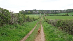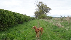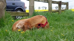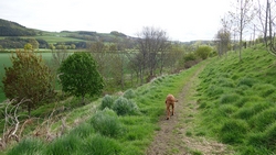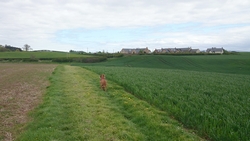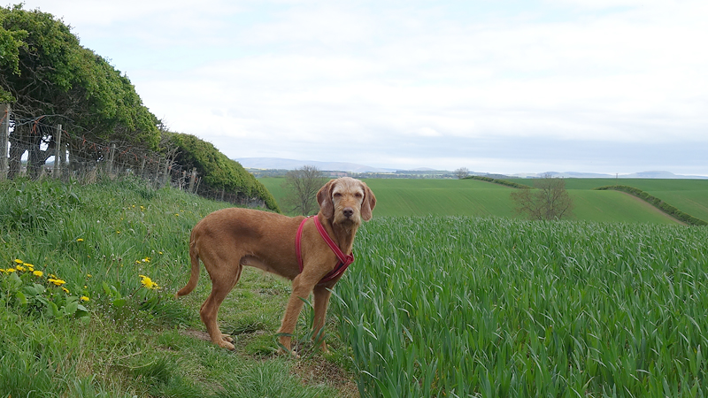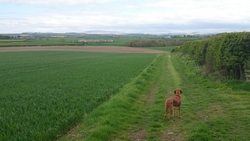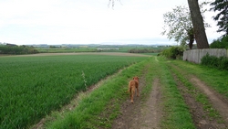 Ik zie Kelso al liggen heel in de verte. We moeten daarvoor nog even over wat velden en woef is blijkbaar echt nog niet moe want ineens wil ze vanavond haas eten en scheurt er vandoor. Dat is niet de bedoeling en al snel is ze weer netjes bij me.