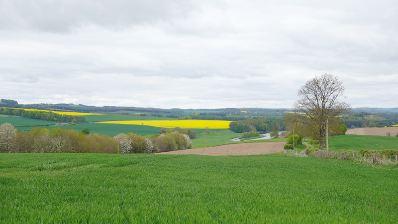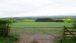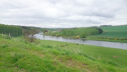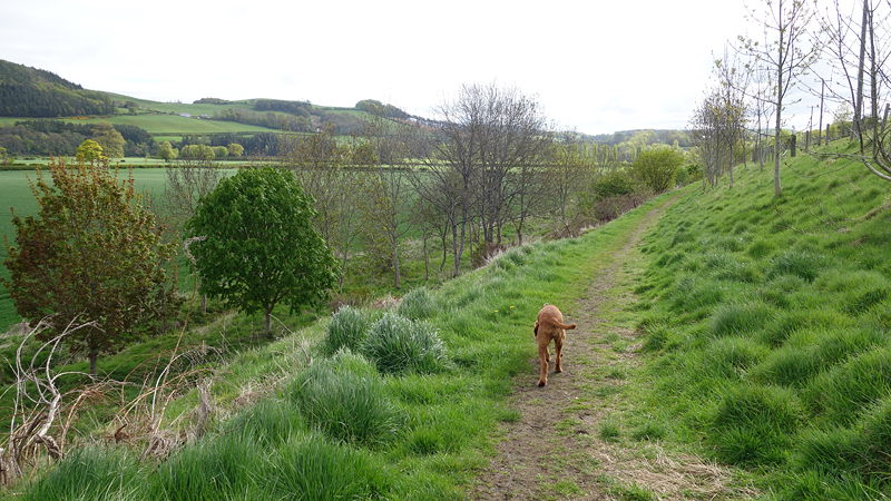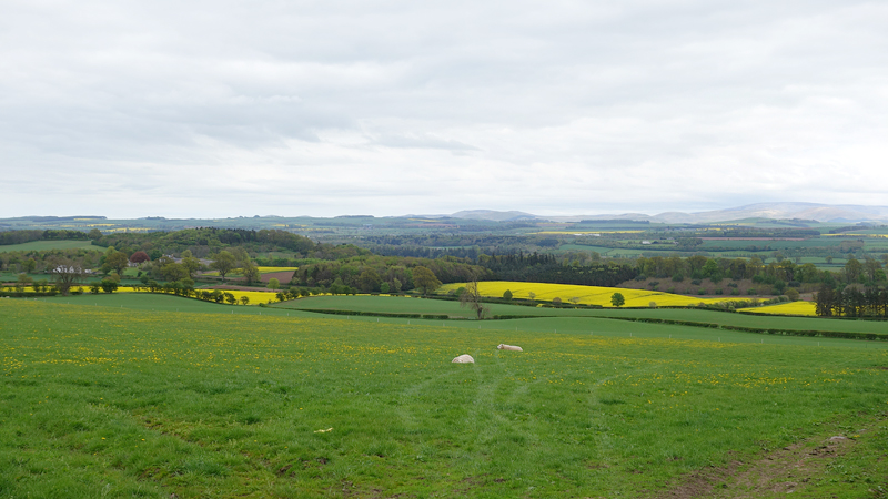 Vanaf nu is eigenlijk vooral het uitzicht mooi en zijn er geen bijzondere dingen meer te zien, behalve straks weer in kelso. De route gaat afwisselend over de rustige weg, over grasland en over bospaden. Van alles wat en het gaat prima.