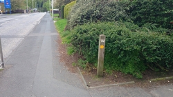 In Kelso loop ik verkeerd, want ook al loop je hier aan de linkerkant, het bordje staat op een laag paaltje aan de rechterkant van de weg. Heel handig. Jammer dat ze niet iets beter hebben nagedacht over de pijltjes en de plaatsing.