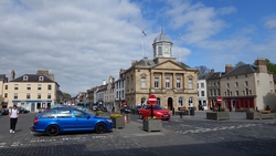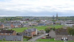 Dan zien we de race course al liggen van Kelso. Een enorme oppervlakte beslaat die racecourse. De racecourse opende in 1822 en is dus behoorlijk oud. Even later lopen we Kelso in en komen bij de ingang.
