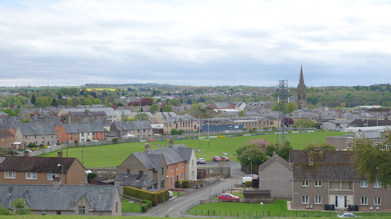 Dan een mooi uitzichtspunt over Kelso met de rugbyclub in het midden en een parkje waar ik doorheen zigzag hoewel de bordjes allemaal door grappenmakers zijn omgedraaid.