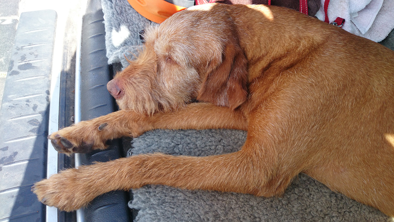 Daarna gauw naar de auto. Waf zal inmiddels wel moe zijn.