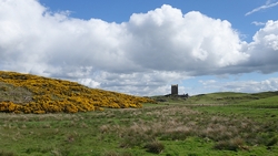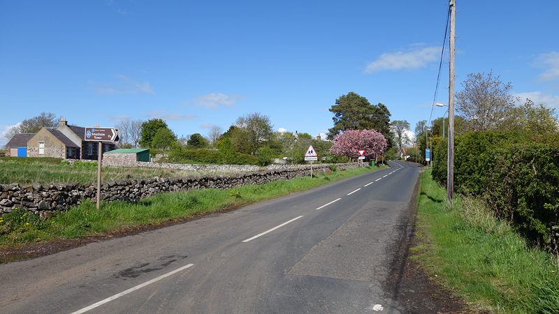 Parkeren bij de kerk en daarna meteen een stille weg op richting Smailholm Tower. Ik kon de tower in de verte al zien liggen en wat lijkt het dan nog een eind!
