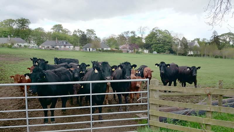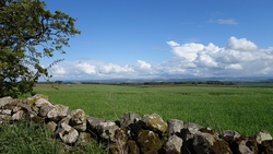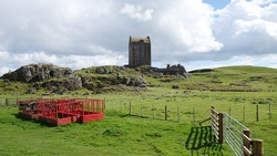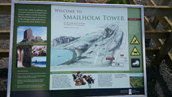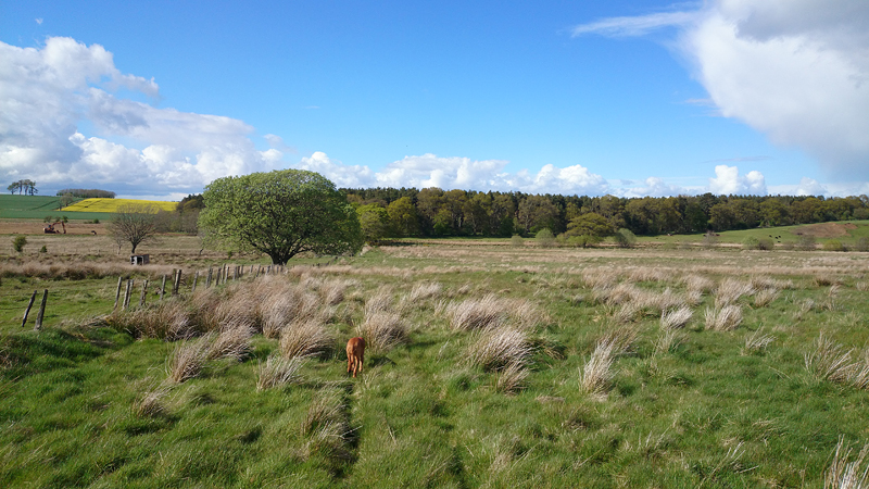 We lopen alweer richting Smailholm en ik weet dat we daar nog een lusje gaan maken. Grappig genoeg staat daar ineens een pijltje dus dat kan ik al helemaal niet missen. Jammer genoeg is het maar 1 pijltje blijkt later, maar ik vind verder de route redelijk makkelijk ook al twijfel ik even aan het einde. Vervelend gevoel want er is echt niets vervelenders dan terug te moeten over een pad waar je met moeite overheen kunt joggen. Maar het gaat gelukkig goed, en ik kom keurig uit bij het hek waar ik moet zijn. Het weer is inderdaad weer omgeslagen en ik loop met de wind tegen terug naar Smailholm waar de auto staat. Aan het einde van het veld staat een groep koeien me weer op te wachten. Ook deze groep rende naast het muurtje weer met ons mee. Nieuwsgierig en ik was maar wat bij dat er weer een muur tussen de koeien en mij in zat!
