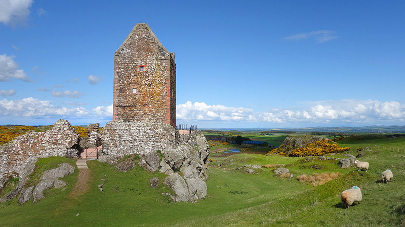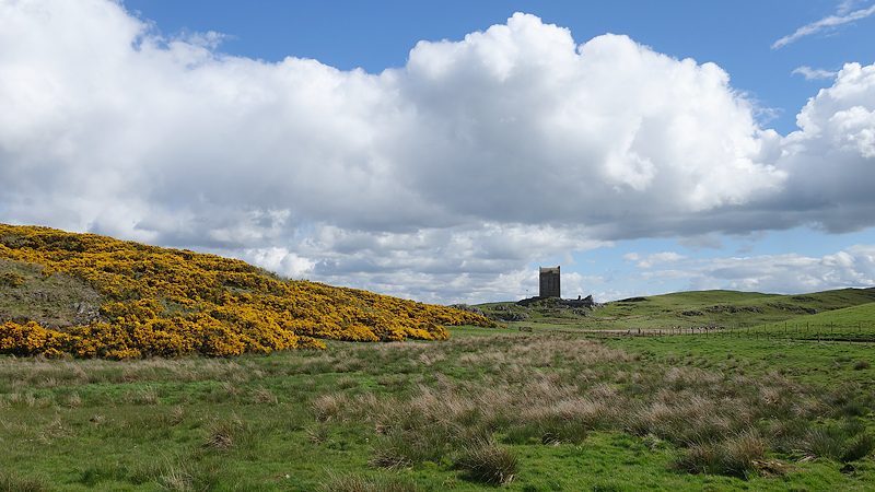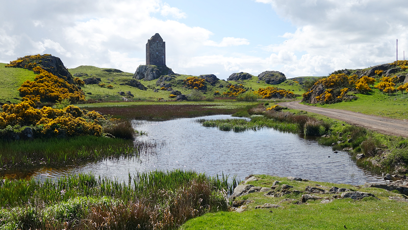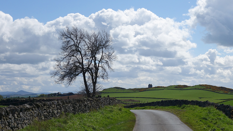 Weer zo’n gekke dag als gisteren. Bewolkt en harde regen in de ochtend, maar volgens de voorspellingen zou het in de middag mooi worden. En dat klopte! Zodra het zonntje begon te schijnen, stapte ik dus in de auto om even naar Smailholm te rijden. Toen ik gisteren terugreed van Melrose, kwam ik namelijk door Smailholm en had een bord gezien dat naar Smailholm Tower wees. En ik herinnerde me dat in het boekje een wandeling stond naar Smailholm, dus de bestemming van vandaag was snel gevonden! Een wandeling van 13 km waar je als wandelaar 4,5 uur voor uit moet trekken volgens het boekje. Die stond dus al in de navigatie en vol goede moed gingen we op pad.