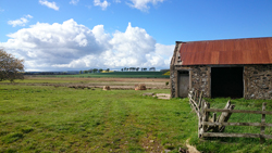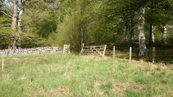 Dat blijkt te kloppen en al snel zijn we weer op het juiste pad. Met een keurig hek waar we doorheen kunnen. Dit loopt ook weer prima en we schieten lekker op. Terwijl ik dit tik, kijk ik ondertussen in het boekje en daar staat keurig die barn ingetekend met de route er links langs. Volgende keer moet ik dus de waypoints maar in de navigatie zetten want dit had ik dus kunnen voorkomen. Het is echt een geklooi als je een pad niet kunt vinden, want soms trekken ze de route ook gewoon over een veld (zou ik later nog achter komen). Dus vreemd is het niet als je ineens ergens doorheen moet waden of zoiets.