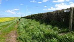 Daarna gaan we op pad. De wind valt echt niet mee zo pal op kop. De oortjes van woef wapperen in de wind!