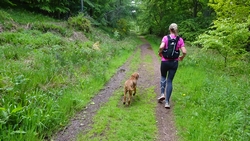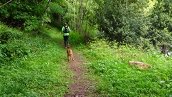 >Het bos is weer mooi en loopt prima. We zullen straks bij het meertje uitkomen en dat is weer prachtig.