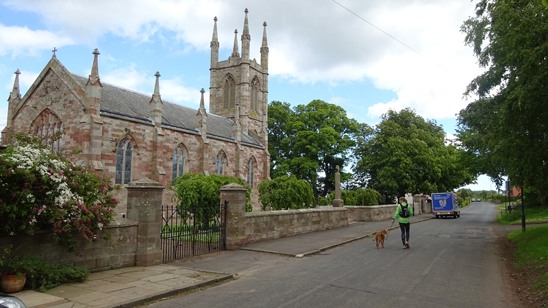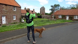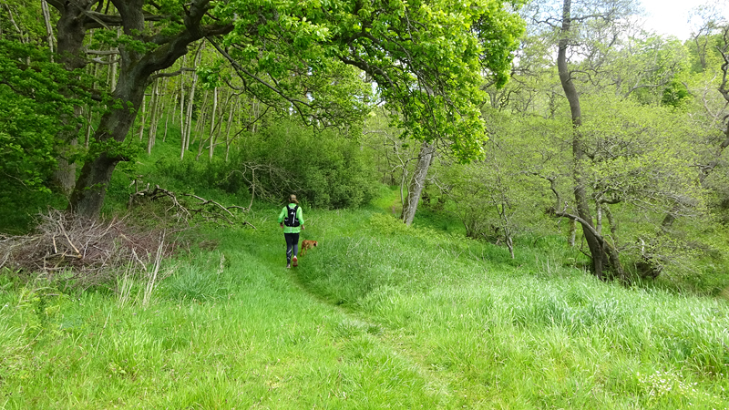 Stenton is best aardig overigens en lekker stil en vredig zo bij het kerkje en het veldje midden in het dorp. De weg naar het bos toe loopt aardig omhoog maar we zijn er al snel en genieten van het uitzicht.