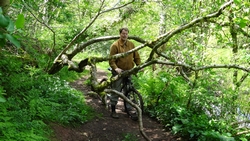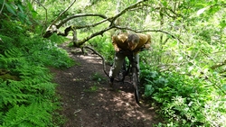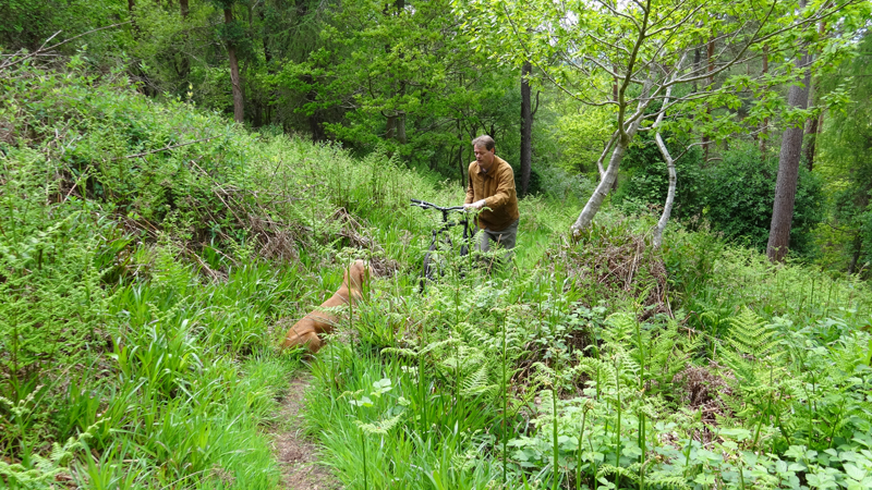Het pad valt her en der niet zo mee met de fiets door bomen en wortels.