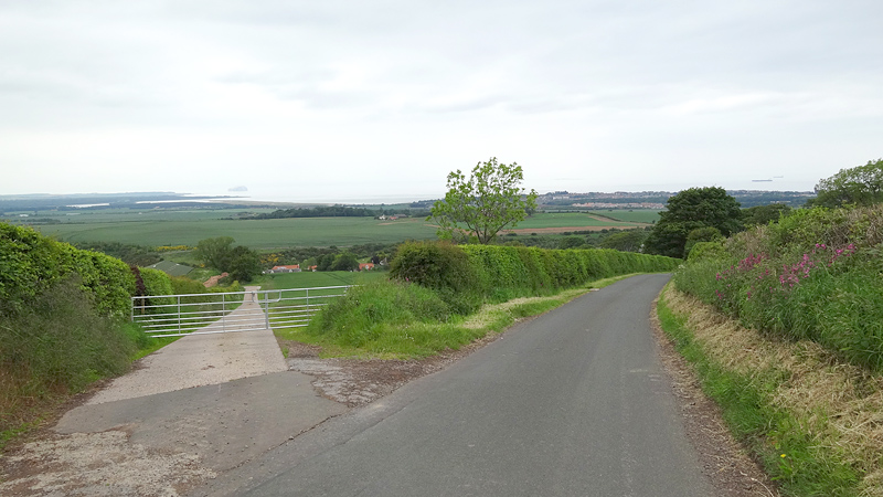 Ik ben vandaag erg lui maar heb wel zin in een ommetje. Eigenlijk ben ik nog steeds van plan om een stukje van de coastal route te doen vanaf St Abbs. Dat moet prachtig zijn maar een beetje helder weer is wel fijn en dat is het nou even niet helaas. De temperatuur is wel goed maar het is helemaal bewolkt en grijzig. Maar goed, dan maar een fijn rondje hier rond het huisje. Ik wil eigenlijk niet een wegrondje doen dus ik kies voor Doon Hill omdat het deels verhard en deels onverhard is. Ik moet dan wel eerst even de klim vanaf het huisje doen maar dat is een mooie warming up. Als ik boven ben, maak ik even snel twee foto’s. Verder niets meer want ik zal niet meer stoppen onderweg. De vorige keer was ik hier nog met S die veel foto’s maakte onderweg!
