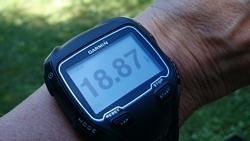 Na de break maken we een rondje door het bos terug naar de tent. Ik maak een klein lusje en na bijna 19 km zijn we weer terug. Prima afstand zo, net lekker want ik was laat begonnen en inmiddels is het toch echt wel vrij warm. Niet erg voor mij, maar ik ben nu eenmaal verantwoordelijk voor woef en zij kan slecht aangeven hoe het gaat. Terug dus!