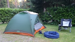 Helaas blijkt de dochter van mijn buurvrouw met de drie kleinkinderen op bezoek te zijn gekomen en aanvankelijk is het even druk met water schietende kids voor mijn neus maar als ik terug kom van de douche zijn ze al vertrokken richting het zwembadje en is het heerlijk stil. Ik heb lekker mijn haar gewassen en met het mooie weer is het zo droog allemaal. Mijn kleding hangt ook te drogen. Ik ga wat lezen en wat mijmeren. Wat een rust. Ik heb de stoel alweer uit de auto gehaald en nadat ik heb geteld hoeveel voer ik nog voor woef heb, besluit ik nog een nachtje te blijven. Het is zo heerlijk en misschien kan ik morgen ook nog wel een stukje lopen in de ochtend voordat ik vertrek!